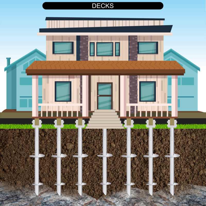 We provide Helical Piles solutions for Residential load bearing capacities.